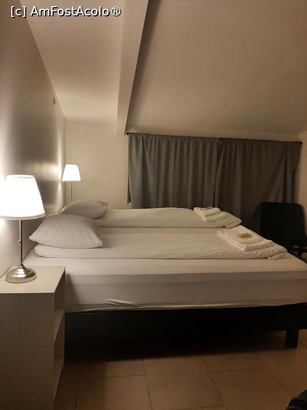 Nu mai țin minte dacă am făcut rezervarea pe Booking sau în altă parte, pentru că nu m-am ocupat personal; am mai zis, în vacanța asta am fost, într-un fel, doar cu beneficiile, nu și cu munca :) . De ce spun asta: în acest moment, Blue Viking Studios nu apare pe Booking (se pot face rezervări direct pe site-ul lor, sau prin alte platforme de rezervări). În schimb apare Blue Viking Pods (era și anul trecut), un fel de hostel aflat în clădirea vecină, unde cumperi doar un pat într-o capsulă, baia fiind pe hol, la comun. Pare... interesant, dar nu vă gândiți că e prea ieftin nici acolo!