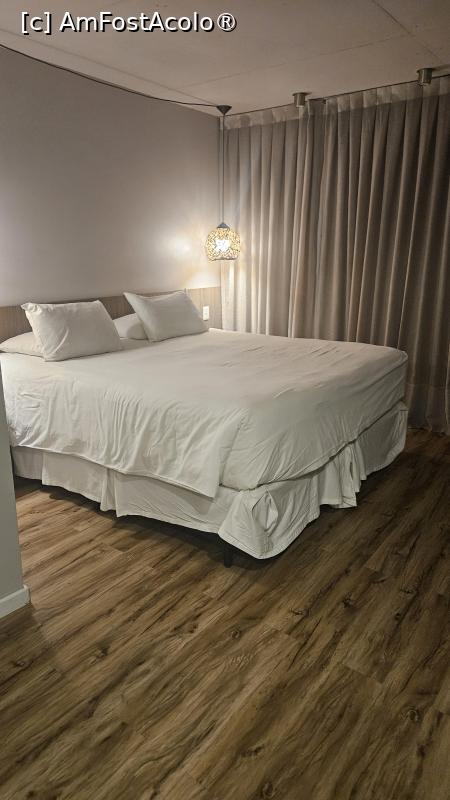 Camera ne-a surprins plăcut. Este spațioasă, luminoasă, cu un design contemporan și o vedere peste oraș. Ne-am aruncat bagajele rapid, m-am uitat pe geam la luminile Montevideo-ului și am realizat că acesta nu este un hotel de vacanță clasic, ci unul perfect adaptat pentru ritmul real al călătoriei.