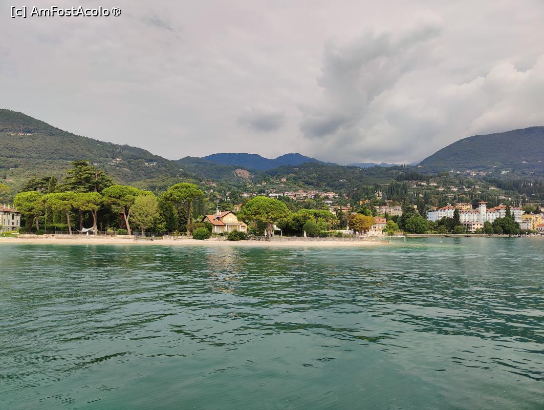 Ambele, Garda și Malcesine, se află pe țărmul estic. Surpriza de care am beneficiat a fost că vaporașul ăsta al doilea a urmat un traseu ocolit, traversând de 2 ori lacul, întâi spre vest, revenind spre est chiar în dreptul lui Malcesine. Astfel am avut ocazia să „vizităm” (fără a coborî, desigur), bună parte din țărmul vestic al lacului!