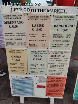 ... Numai că... socoteala de acasă nu se potrivește mereu cu cea din târg! În primul rând, șoferul nu s-a mulțumit doar cu o zi de relache, ci n-a vrut să conceapă, sub nicio formă, să se scoale „cu noaptea-n cap” și a solicitat o oră mai rezonabilă de plecare în excursie. Există un vaporaș ce pornește din Sirmione la 09:15, așa că a trebuit să reconfigurez traseul, renunțând la Garda, respectiv Salo. În al doilea rând – și asta a fost adevărata surpriză! : lângă casa de bilete din capătul pontonului erau niște panouri cu sugestii de excursii de o zi, iar cea cu Malcesine și Limone era în mare parte acoperită de o hârtie pe care scria „Full” . Și undeva într-un colț: „doar 50 de locuri” . N-am prea înțeles nimic de la tanti de la casă, care era foarte agitată, nu știu de ce și insista să cumpărăm alt traseu. M-am ambiționat și am zis nu, eu vreau să văd ce mi-am propus, măcar una din două, dacă altfel nu se poate! Și am insistat să ne vândă bilete de o zi pe întreg lacul, ceea ce cu greu s-a finalizat, tanti susținând că suntem cu capul și că sigur o să dormim la noapte prin cine știe ce boscheți... Dar n-a avut încotro și ni le-a vândut. Nu știam exact care va fi traseul zilei, am luat cu noi o hartă și un orar al curselor în format fizic. Totodată am dat cu banul: Malcesine să fie. N-a fost deloc rău ce a ieșit și voi încerca să dovedesc acest lucru...