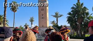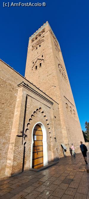 Apoi am trecut pe lângă moscheea Koutubia, situată la 200 m sud de piață, căreia i-am dat un ocol și, desigur, i-am fotografiat cu zel frumosul minaret care seamănă leit cu turnul Giralda al Catedralei din Sevilla, de altfel fiind construite în același stil arhitectonic almohad cam în aceeași perioadă, pe vremea când sudul Spaniei era ocupat de mauri. Minaretul este vizibil de departe și reprezintă un reper de seamă al orașului.