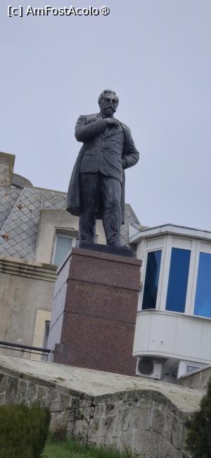 În capătul străzii Nicolae Titulescu, puțin spre dreapta, ajungem la Statuia lui Anghel Saligny. Este o statuie din bronz, de 3 m înălțime, realizată în 1957 de Oscar Han. Este amplasată pe promontoriul înalt din dreptul „Porții nr. 1” , dând posibilitate inginerului să-și privească lucrările realizate în port. Ghidul enumeră, între acestea, silozurile de 45 m înălțime de la danele 17 – 18 și digul de larg, care a creat permisele amplasării ulterioare a Cazinoului. Din păcate, statuia este cu spatele la noi, Vom coborî mai târziu să-i facem o poză din față.
