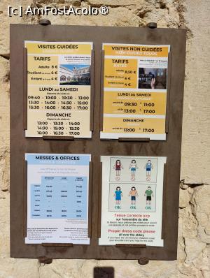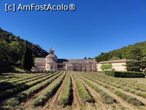 Tufele de lavandă încă se țineau bine, am făcut și noi fotografia celebră, cea pe care o vedem prin toate reclamele despre Provence, cu rândurile acelea frumos aliniate ce converg spre mănăstirea de piatră alburie. Pe urmă am făcut câțiva pași prin zonă, nu eram deciși dacă să vizităm sau nu; ne-a decis soarta, aflându-ne într-o zi de duminică 😊, chestie pe care o uitasem pe moment. Ca idee, se pot face vizite ghidate (la ore fixe) sau neghidate (acestea sunt un pic mai scumpe), însă duminica doar după ora 13. Logic. O să postez o poză cu detalii. Nici măcar magazinul de suveniruri nu era deschis, ar fi trebuit să mai așteptăm vreo juma de oră, ceea ce nu prea aveam chef.