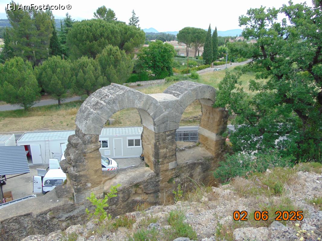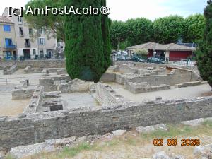Ziua continua cu vizita la un alt sit roman, adica dupa ce am vizitat Orange cu spendidul amfiteatru, zona Provence este bogata în vestigii romane, semn al prezentei si influentei Imperiului Roman. Dupa ce am parcurs doar 28 de km, distanta e prea mica ca sa ratezi si acest obiectiv, mai ales ca e un parc arheologic în aer liber, plimbarea printre vestigiile arheologice e o adevarata placere daca timpul e favorabil. Din pacate noi nu am avut noroc pâna la capat, începutul de luna iunie 2025 s-a dovedit la fel de ploios, dar ploi diluviene, nu gluma !