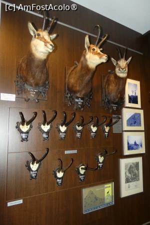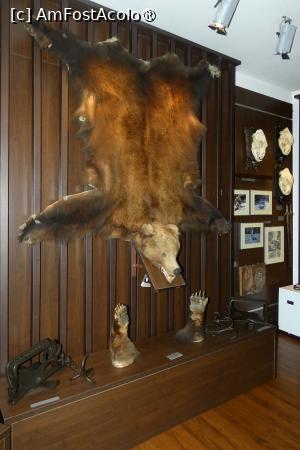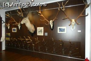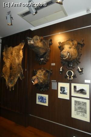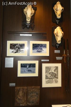 Următoarea sală este dominată de vânatul mare (urşi, mistreţi, cerbi şi capre negre) la care se adaugă un râs, câteva capcane şi medaliile obţinute de multele trofee expuse. Şi binenţeles, panouri şi imagini, cu care deja ne-am obişnuit din camerele precedente şi pe care de altfel le găsim în tot muzeul. Şi încă ceva ce am uitat să menţionez, ce are legătură cu întreaga expoziţie. Fiecare exponat este însoţit de o descriere, în cazul obiectelor, ce reprezintă acestea, în cazul vânatului, avem menţionate specia plus anul recoltării (la unele, şi locul recoltării).