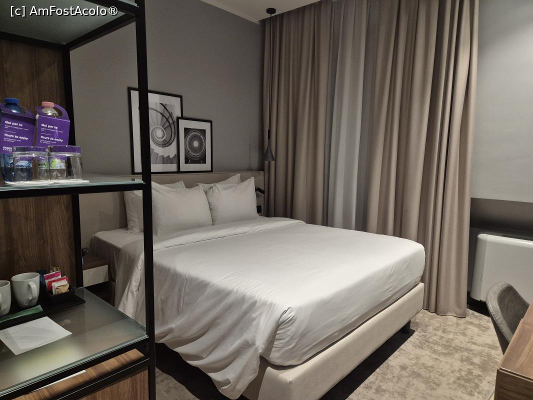Camera: am plătit pentru cea mai ieftină, standard cu pat dublu. A fost destul de micuță, 17 m², dar cu un design modern și mobilier nou-nouț. Nu am folosit mai nimic din facilitățile oferite (aer condiționat, televizor ultimul model, Wi-Fi gratuit, seif, minibar, telefon, birou), dar le menționez aici, informația poate fi utilă pentru alți turiști. În schimb am băut apa plată pe care am găsit-o, plus că am utilizat fierbătorul și am consumat în prima seară pliculețele de ceai (nu am primit altele pentru a doua zi). Am apreciat șifonierul încăpător, precum și cuierul de pe hol. Prize erau peste tot. Deși afară a fost frig, în cameră a fost cald și bine (chiar exagerat de cald, am acoperit caloriferul la un moment dat cu niște pături, pentru că nu avea rozetă și nu am identificat nici termostatul).