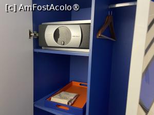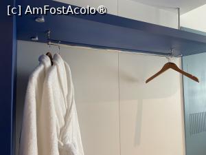 Pe holul de la intrare se afla un dulap micuţ cu două uşi, tare prost compartimentat, cu o parte cu rafturi, puţine! , şi o parte cu bară pentru umeraşe. În continuarea acestuia, intrând în cameră, se afla un suport generos pentru bagaje care avea deasupra şi o bară pentru umeraşe, lăsând totul la vedere. Aici erau agăţate şi halatele de baie cu sigla Rixos, albe şi pufoase, de care eu nu am avut nevoie. Pe un raft din dulapul de pe hol se afla şi seiful electronic laptopsize, cu utilizare gratuită, în care am pus lucrurile importante şi nu am prea mai umblat în el până la plecare.