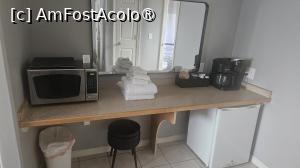 Aveam și frigider și cuptor cu microunde, dar și aparat de cafea. Un fotoliu cu un taburet plus două veioze puse pe două noptiere făceau parte din dotările camerei, dar și un dulap de haine. Evident nu lipsea un televizor smart pe care ca de fiecare dată nu am apucat să-l deschidem.