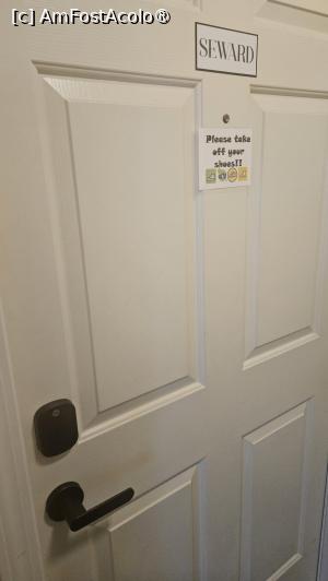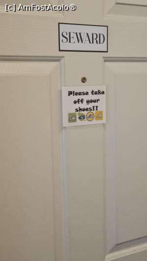 Noi am fost cazați la suita Seward situată la etajul întâi. De la intrare ni se pune în vedere să nu intrăm încălțați, semn că se pune extrem de mare preț pe curățenie.