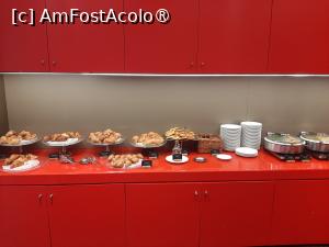 Micul dejun nu a fost la nivelul camerei, dar a fost bun. Puteți vedea în pozele atașate: multe fructe, sucuri și dulciuri. Salamurile și brânzeturile nu erau cine știe ce, dar mi-au plăcut grozav plăcințelele și rulourile din P26, umplute cu spanac, ciuperci, varză. Cafeaua – bună, și ea.