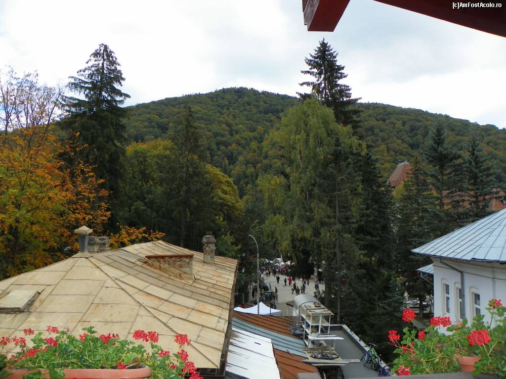 Localizarea pensiunii are priveliste catre gara Sinaia. Este poza facuta cu zoom catre poienita din stanga garii Sinaia. Camera dispune de un balcon mare de unde se pot face poze de peisaj.