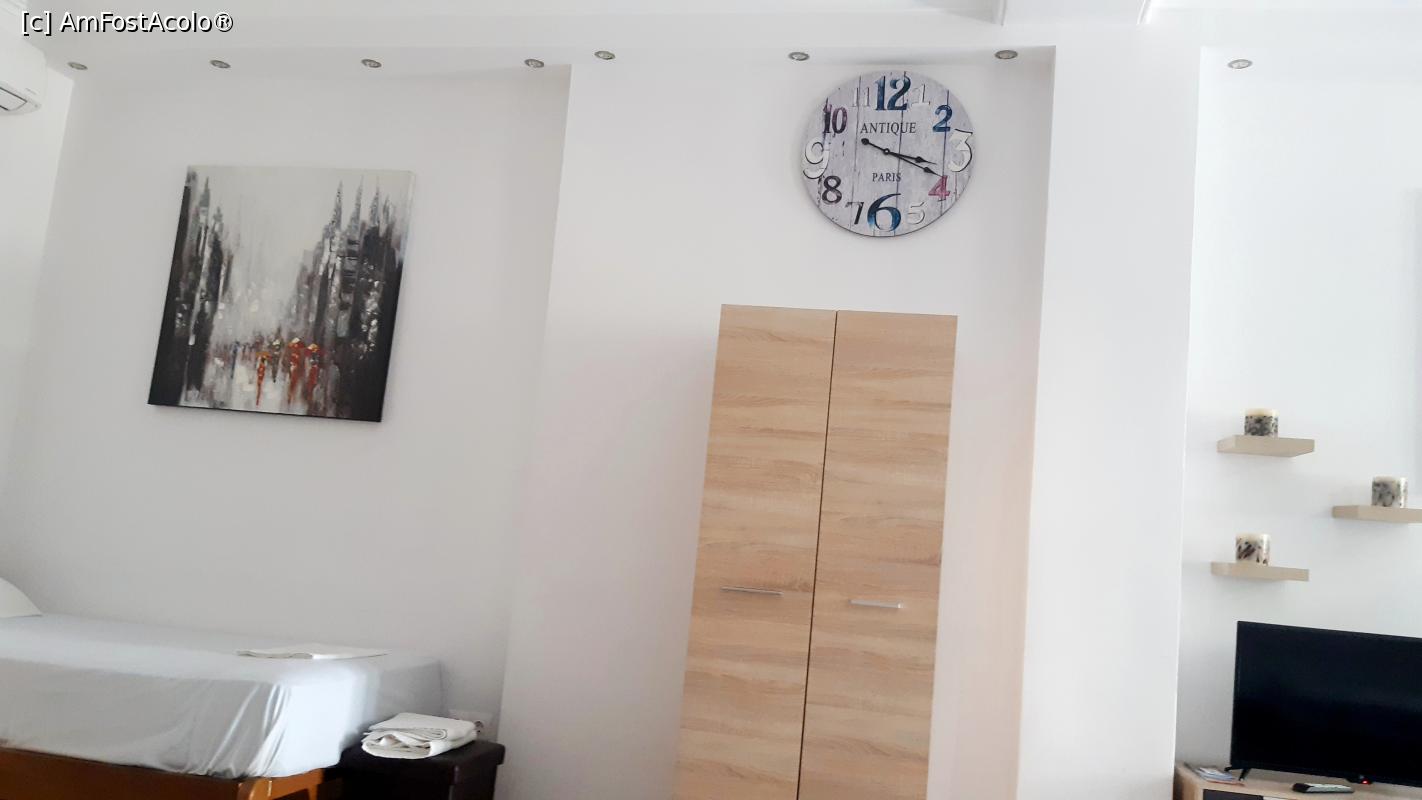 [P08] Patul de o persoană, șifonierul, ceasul și una din imaginile din New York