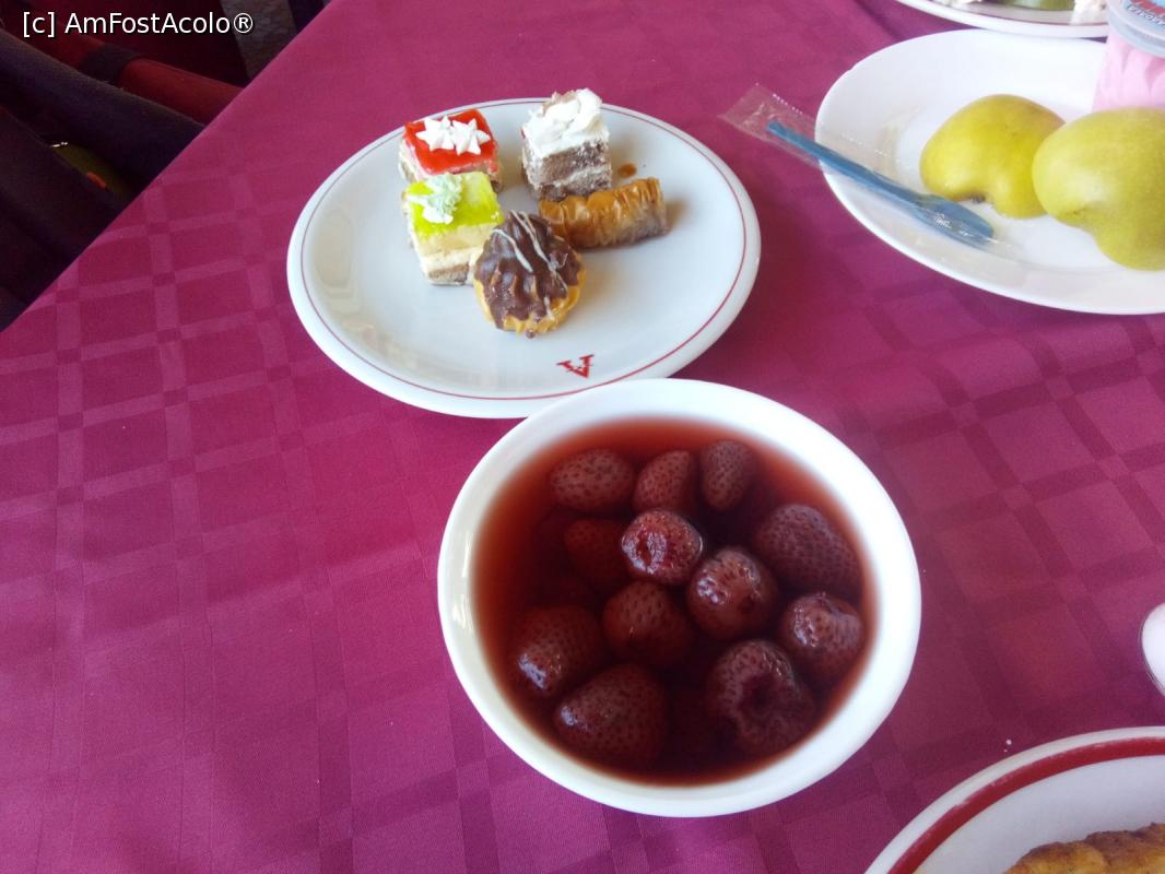 [P01] Prajiturile si compotul de capsuni sau piersici erau prezente la toate cele 3 mese principale.