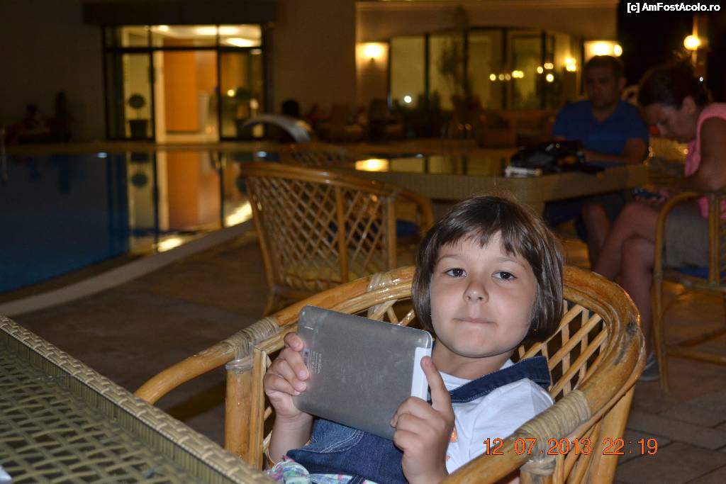 [P01] Intrarea principala in hotel si "printesa" noastra. Piscinele sunt in stanga.