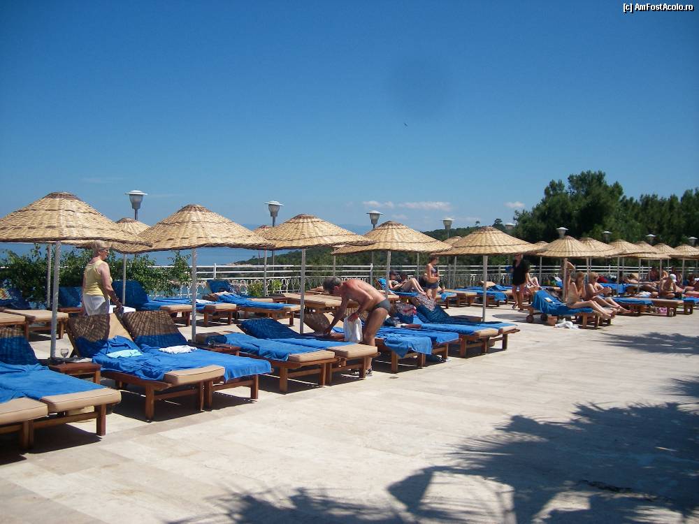 [P14] Sezlongurile si umrelele de langa piscina. Au fost locuri suficiente pt toti.