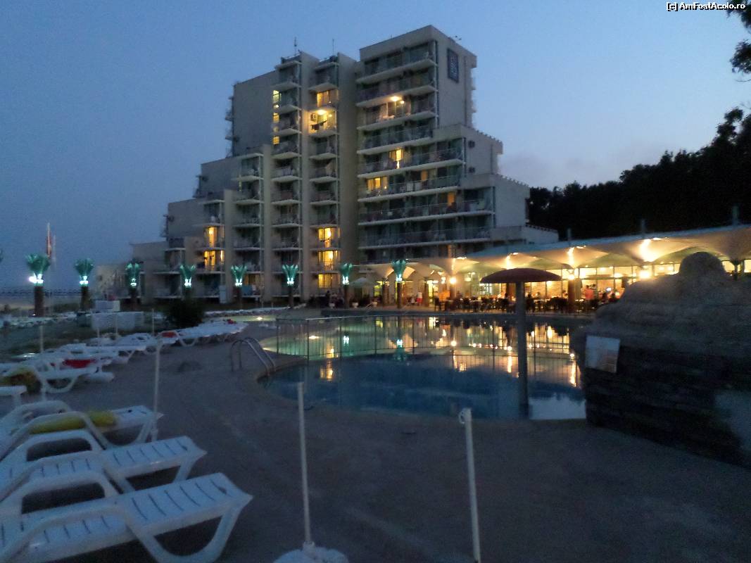 [P11] Hotelul și piscina, seara.
