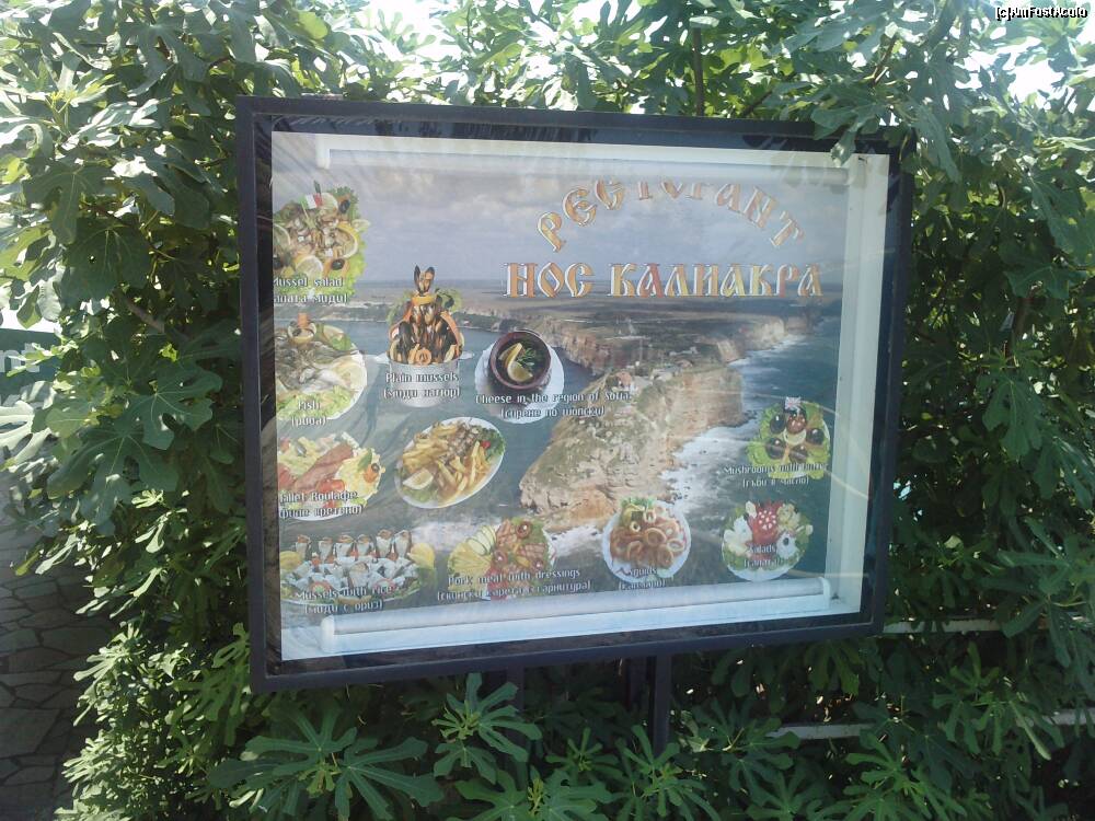[P10] 31.07.2011 - meniul restaurantului de la cap Kaliakra - pomul care se vede pe fundal este un smochin