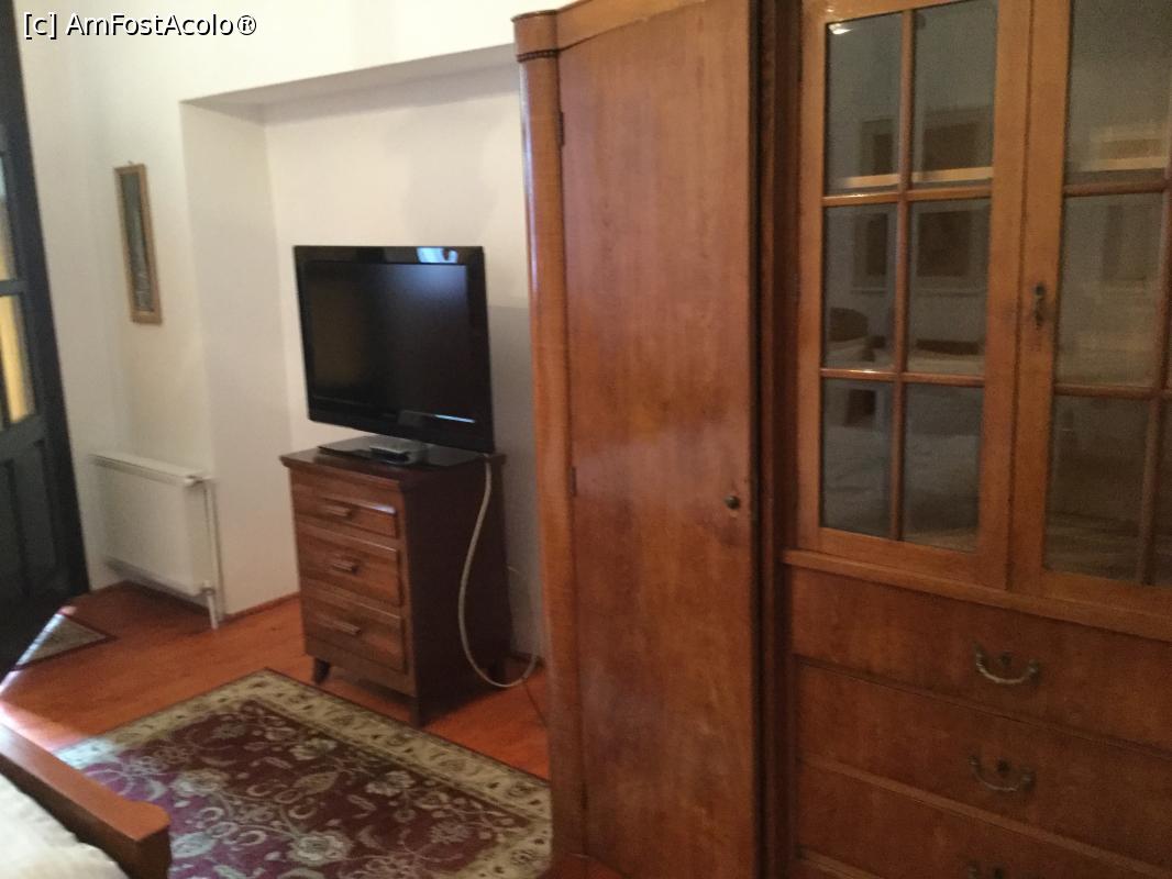 [P08] Casa Mador, Sighisoara - Dormitorul chiar era mare, un adevarat rasfat si va rog sa observati mobilierul. Usa da in balconul cu vedere la strada (nu a incomodat pe nimeni, cand ne-am intors la culcare nu mai era nimeni pe strada)