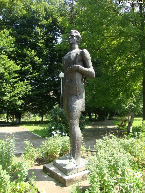 [P18] În curtea muzeului se află statuia care-l înfățișează pe Porumbescu stând în picioare și ținând strâns la piept vioara ce i-a fost atât de dragă.
