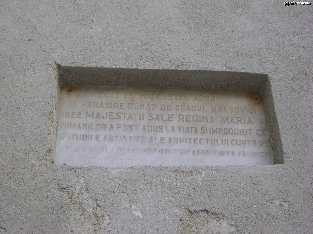 [P27] Castelul Bran - placa comemorativa prin care se aminteste de donatia facuta de orasul Brasov Reginei Maria