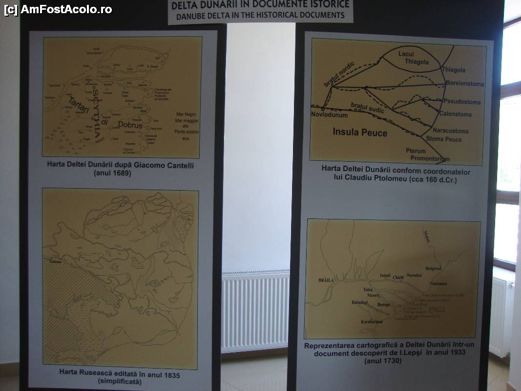[P29] Delta Dunării, așa cum a fost prezentată de-a lungul timpului în diverse documente. Ne aflăm la nivelul intermediar de vizitare, respectiv locul prin care am intrat în clădirea muzeului.