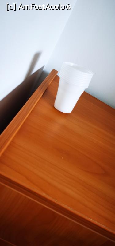 ![[P04] Pahare de unica folosinta puse direct pe noptiera plina de praf. » foto by ux130586