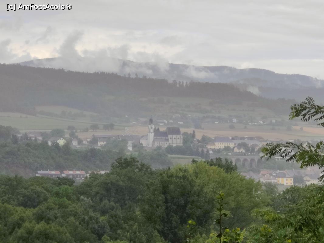 [P69] View din grădinile abației Melk, pe ploaie cu spume