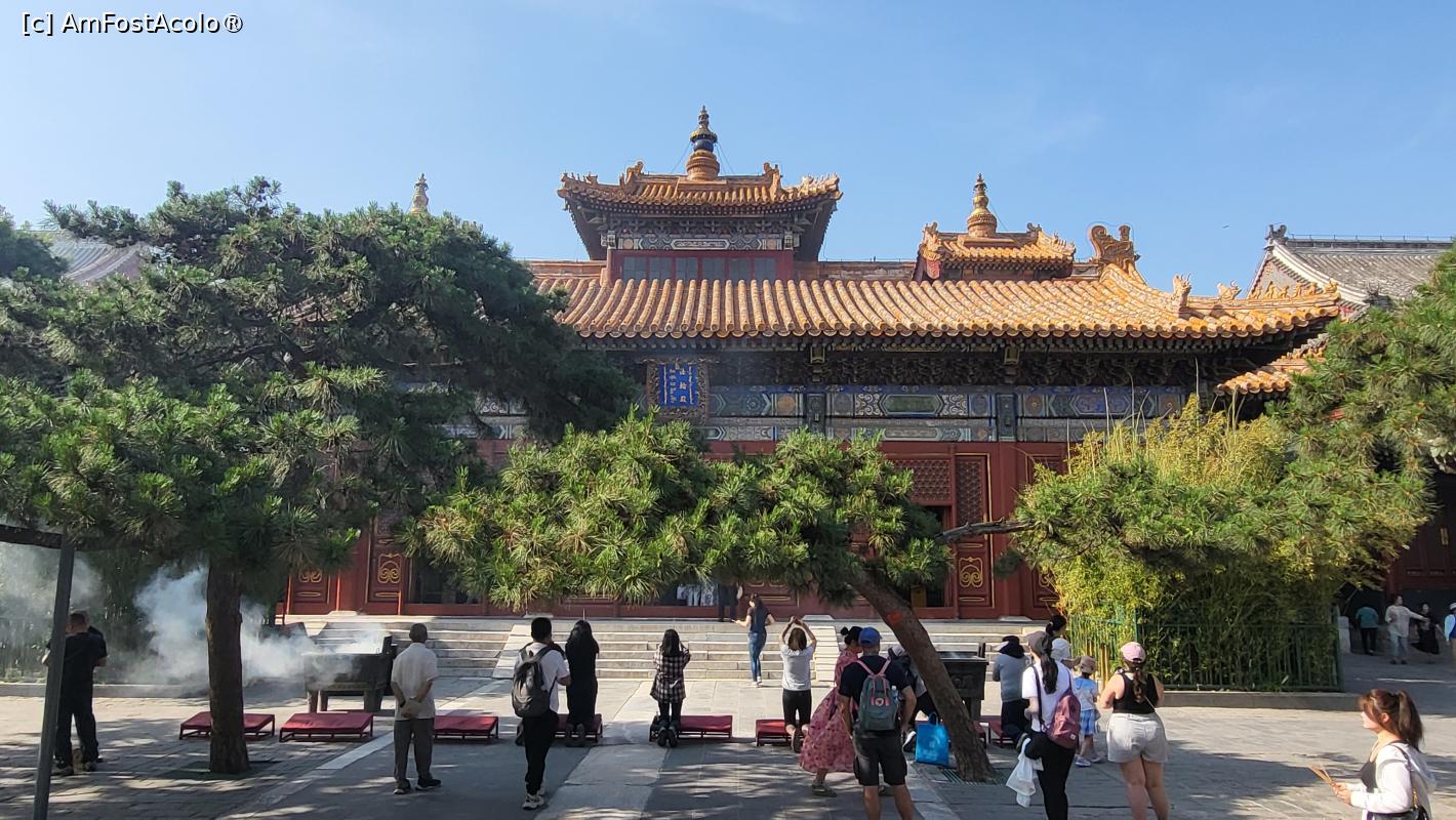 [P19] Traversam din nou o curte si ajungem la Wanfuge (Pavilionul celor Zece Mii de Fericiri), ultimul palat formal vizitat in Templul Yonghe Lama. Acesta este cel mai inalt palat, avand 3 etaje.