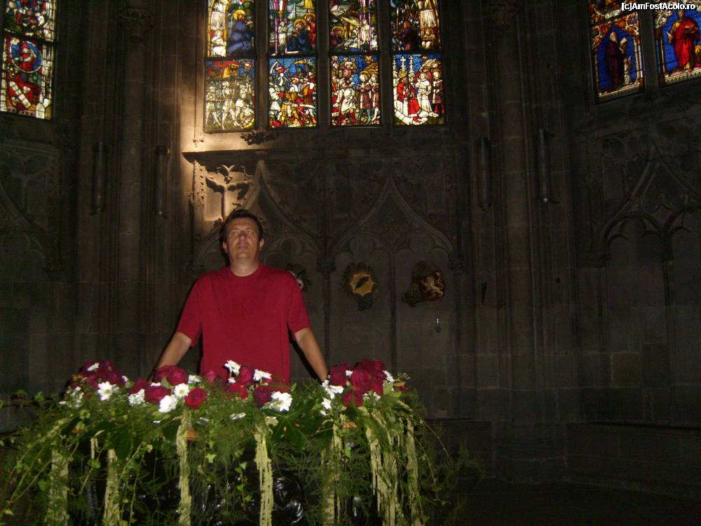 [P07] Un pupitru din catredala si spectaculoasele vitralii ale ferestrelor.