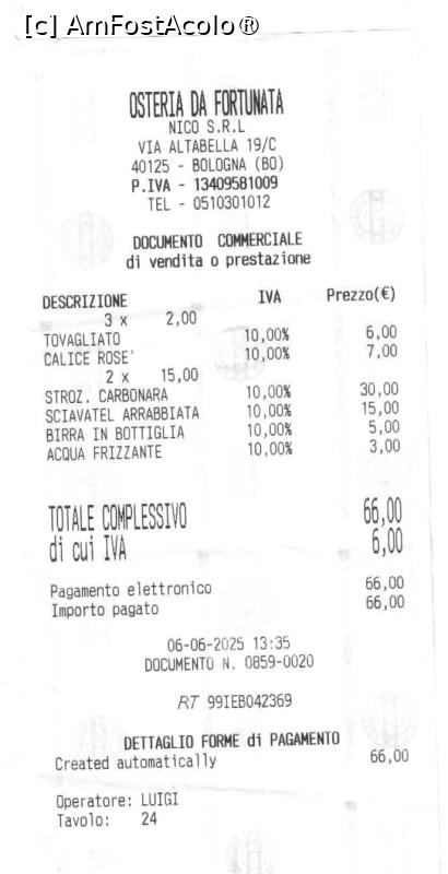 [P04] Cam cat costa o masa de 3 la OSTERIA LA FORTUNATA
