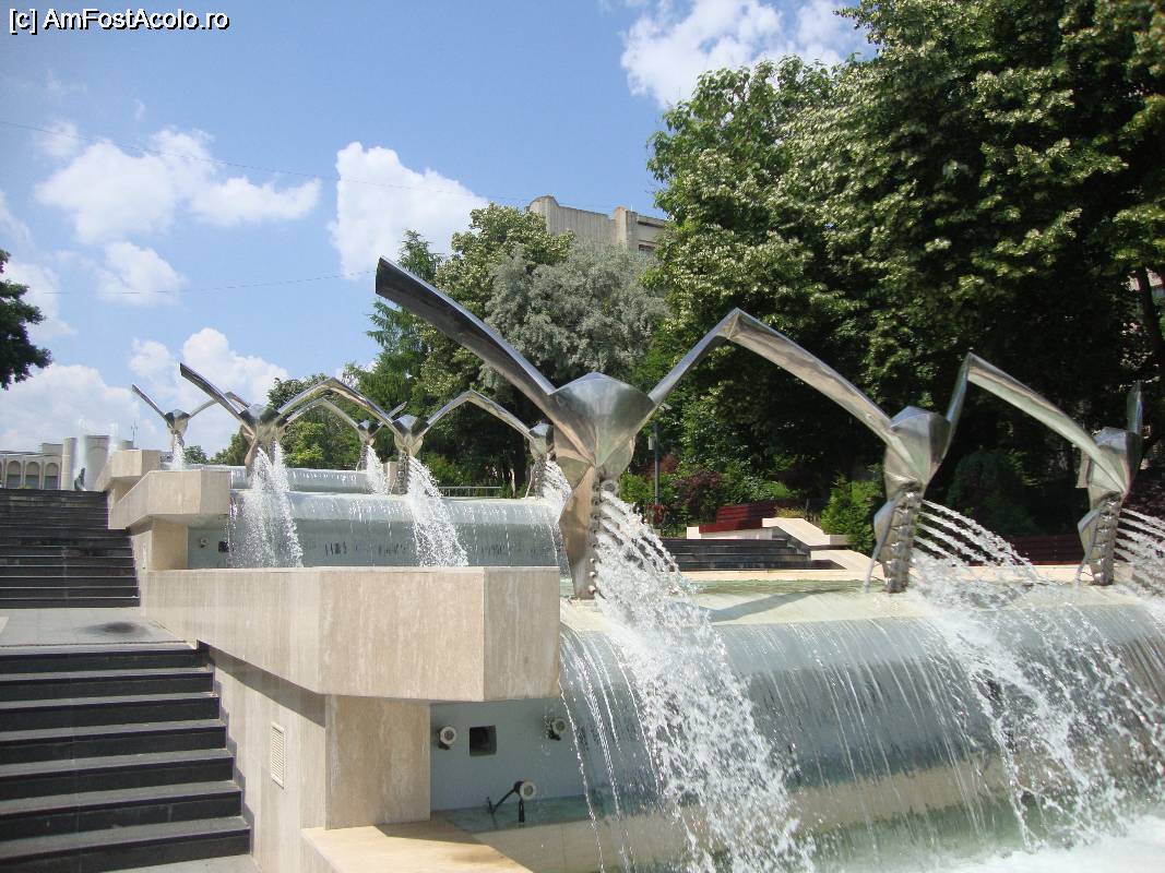 [P21] Admirăm o fântână arteziană foarte frumoasă. Ne și stropim un pic.