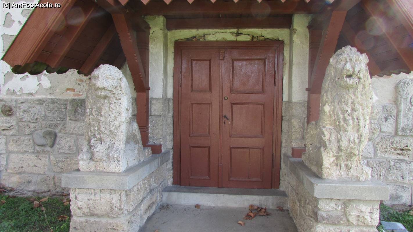 [P07] Intrarea în Biserica Reformată, străjuită de 2 lei de piatră