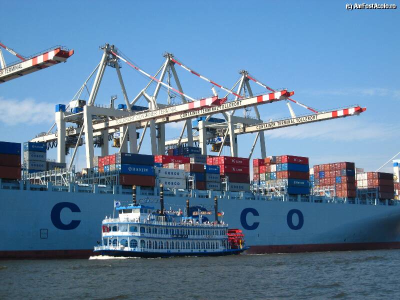 [P5x] Portul din Hamburg este cel de-al doilea ca marime din Europa, dupa cel din Rotterdam. Este un adevarat furnicar: o multime de macarale incarca sau descarca intr-una containere cu marfa