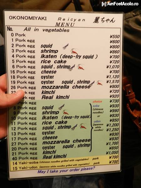 [P30] Meniul de la Restaurantul de Okonomiyaki. How many Pork Eggs, would you like Sir??