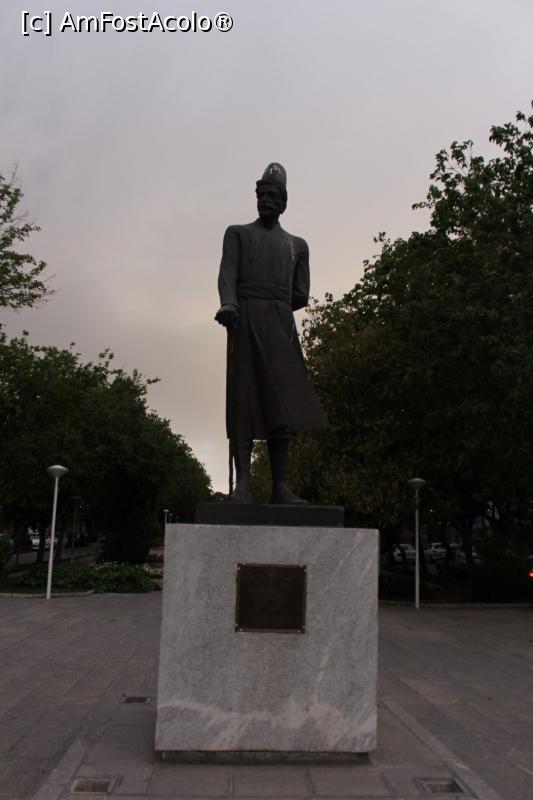 [P62] Isfahan, Statuia Ostand Ali Akbar, arhitect al sec. 17 al dinastiei Safavid, aflată la intersecția dintre străzile Ostandani unde se afla hotelul nostru și zona mediană de parc a străzii Hasht Behest, treceam mereu pe acolo