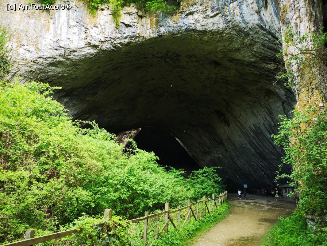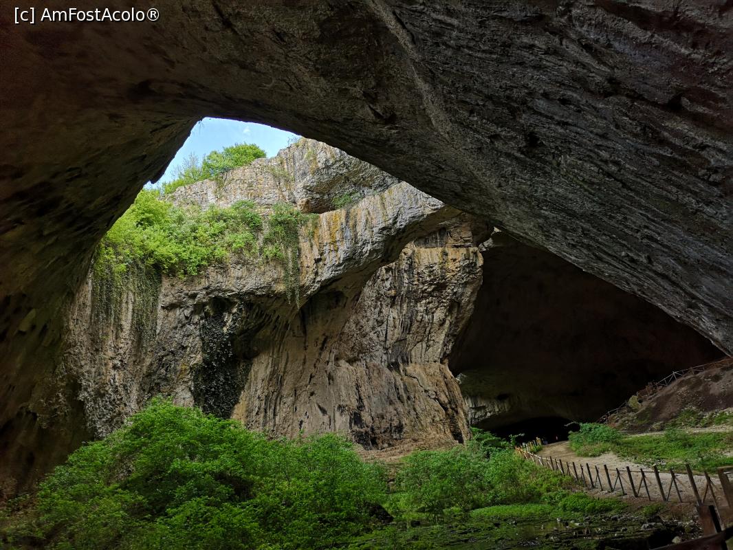 [P31] Peștera Devetashka; intrarea uriașă) și, în dreapta, panoul în formă de liliac cu aripile desfăcute)