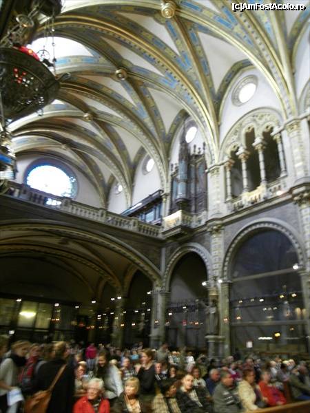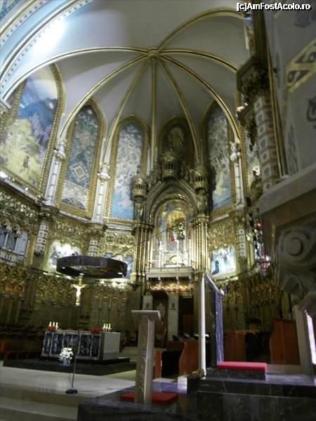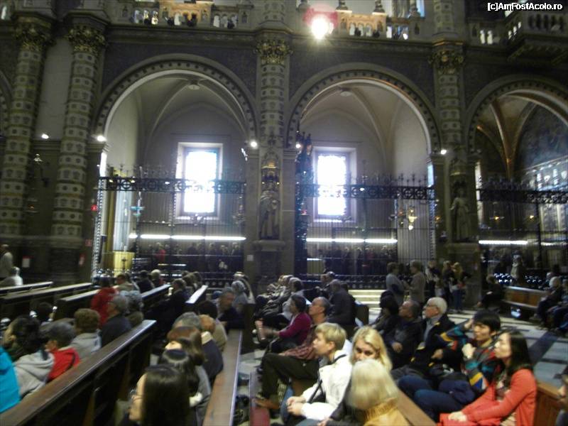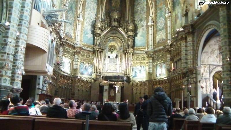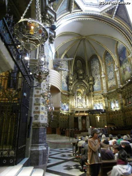 [P97] Basilica Montserrat privind inspre altar. Fecioara neagra e sus, la etaj, deasupra altarului.