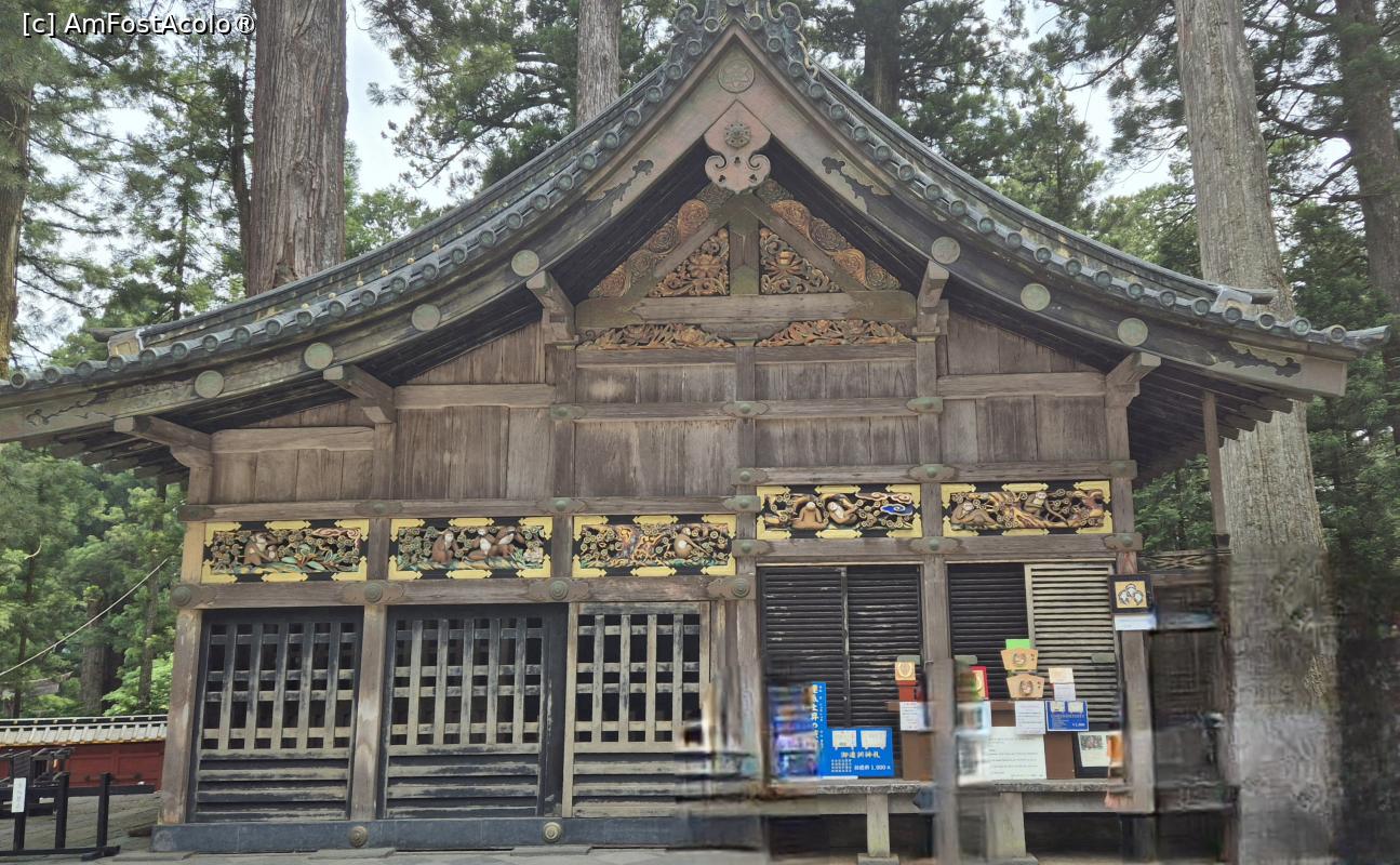 [P07] Shinkyu-sha, ,,Grajdul Sacru”, ce adapostea doi cai albi sacri folositi in timpul ceremoniilor la templu. Cladirea din lemn nevopsit, are cateva frize cu sculpturi ce permit aerisirea in interior si care ilustreaza etape ale vietii maimutelor, acestea fiind considerate gardieni ai cailor.