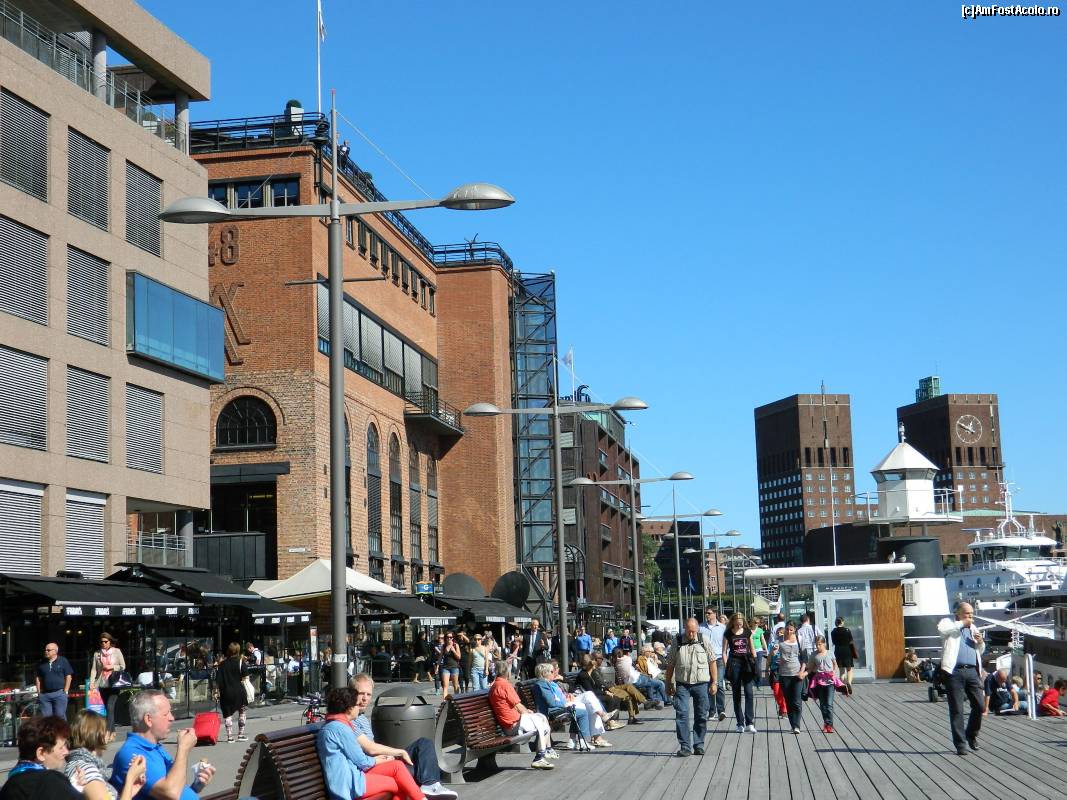 [P08] Plimbare pe faleza din port, in fundal se vad turnurile primariei din Oslo
