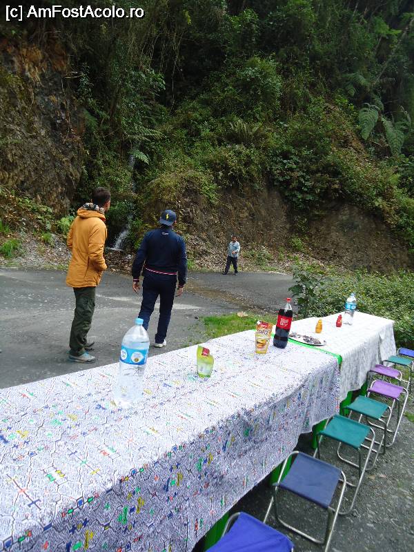 [P08] chiar pe margine soselei, langa cascada minunata, oamnii junglei au intins masa pentru noi