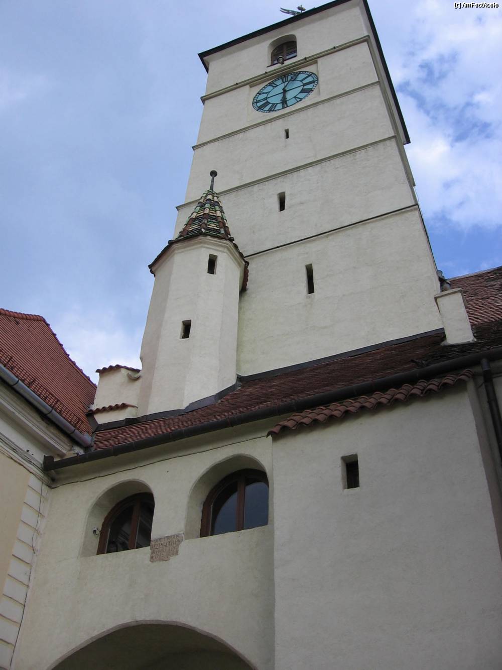 [P05] Turnul Sfatului, numit asa fiindca in cladirea din stanga lui dinspre Piata Mica, se aduna candva ''sfatul orasului'', deci e prima cladirea a primariei