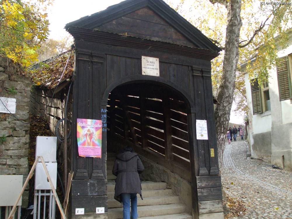 [P08] intrarea pe scara acoperita, in dreapta se vede a doua varianta de a urca dealul
