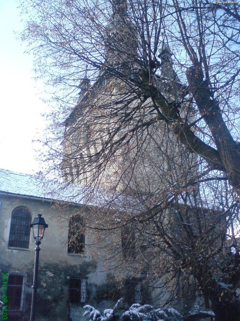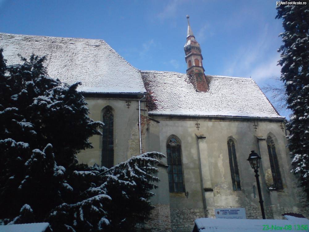 [P14] Biserica din deal, deja ninsa usor nu numai de ani, ci si de o mica scuturare a norilor de nea, la Sighisoara