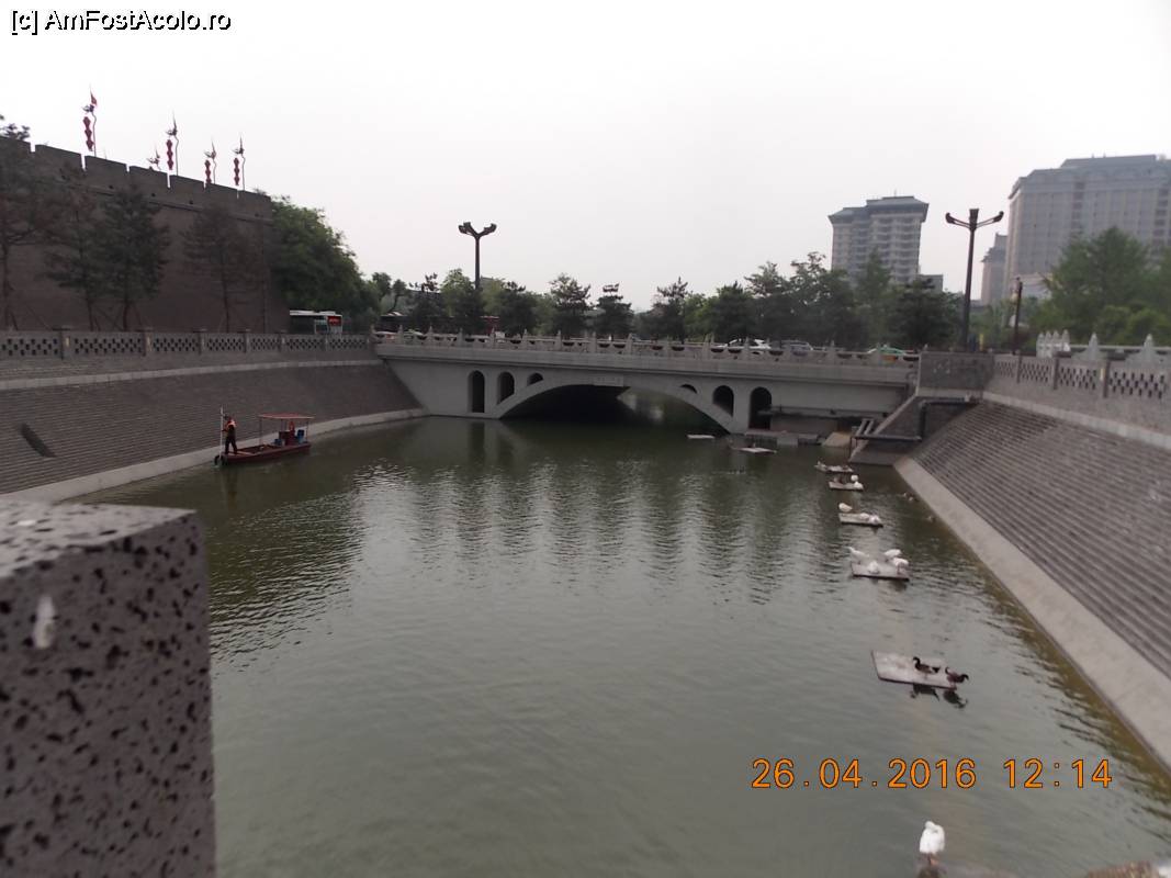 [P67] Xi’an, Zidurile Orașului împreună cu Canalul cu Apă formau o fortificație greu de cucerit, astăzi cu păsări la odihnă și barcă pentru plimbare