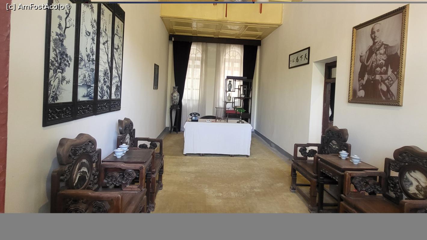 [P10] Acum, birourile, scaunele, paturile, canapelele, seturile de ceai, sobele, covoarele, telefoanele folosite in fiecare camera si birou, sunt reproduse si aranjate conform aspectului lor original, restabilind aspectul original al dormitorului lui Chiang Kai Shek. Gaurile provocate de gloante in timpul incidentului, sunt inca pe ferestrele de sticla si pe peretii Salii cu Cinci Camere.