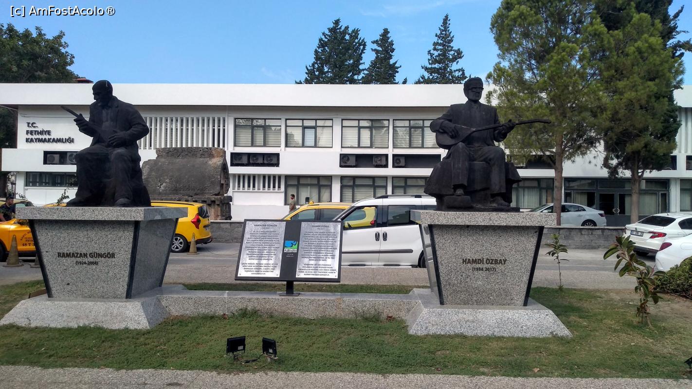 [P07] Un mic Memorial de lândă Sediul Guvernoratului care reprtezintă doi mari muzicieni născuți în Fethiye; Ramazan Gungar și Hamdi Ozbay. Ei sunt fondatorii Centrului Cultural din Fethiye și au făcut cunoscut folclorul turcesc peste hotare.