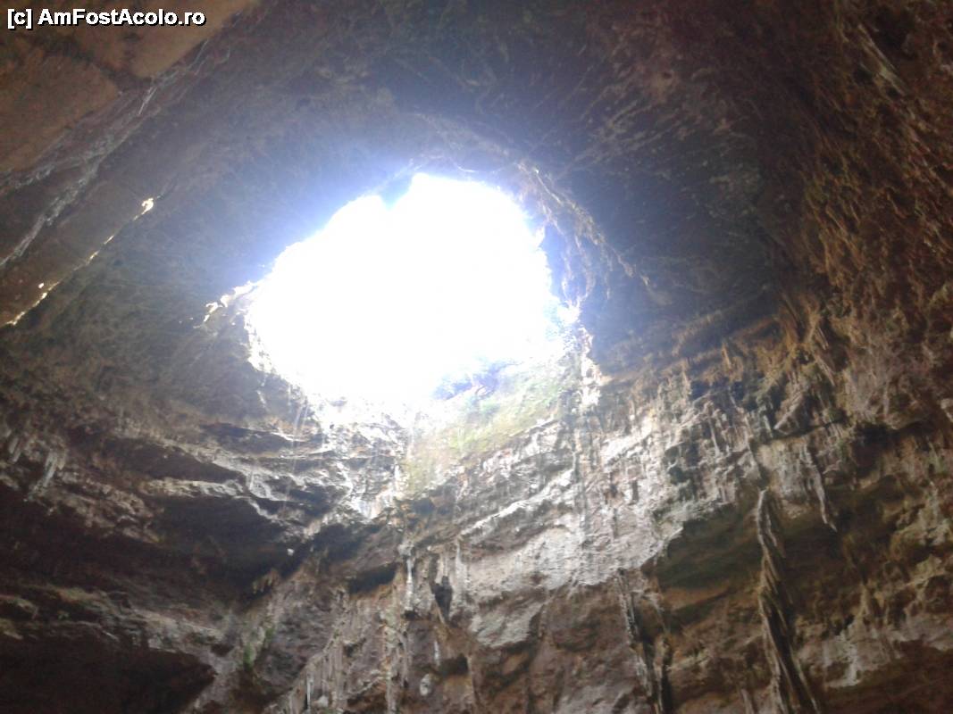 [P05] Prima cameră, Mormântul din cadrul complexului Castellana Grotte și fereastra din tavan care face legătura cu exteriorul