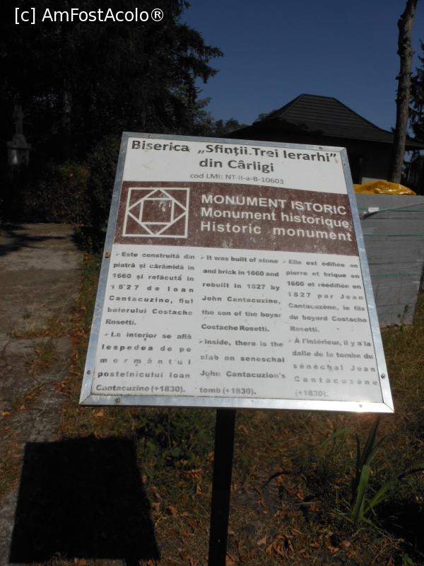 [P02] Cârligi - Bisericii “Sf. Trei Ierarhi”. Mic panou informativ.
