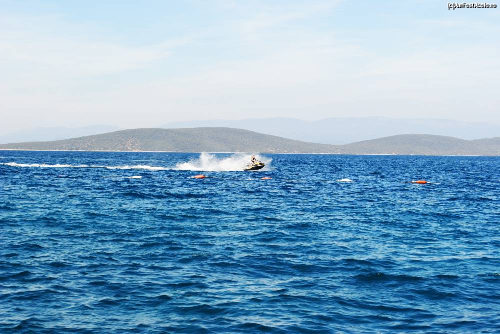 [P06] Poza este facuta de pe pontonul unde erau asezate un fel de paturi din piele. In apa o sa vedeti delimitare intre zona de inot si cea pt sporturi nautice