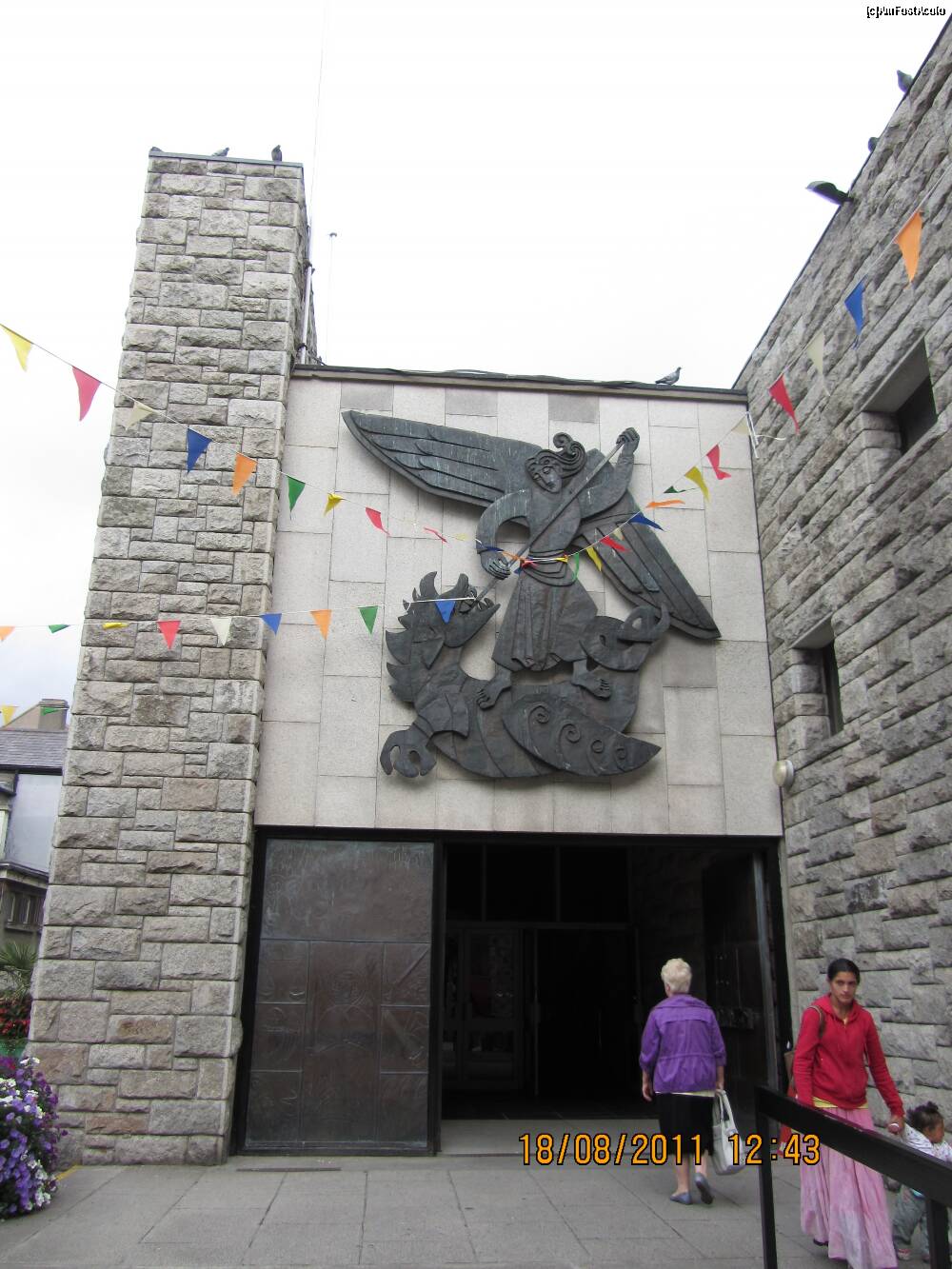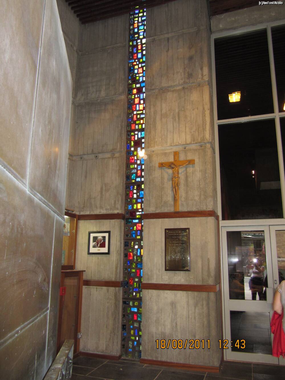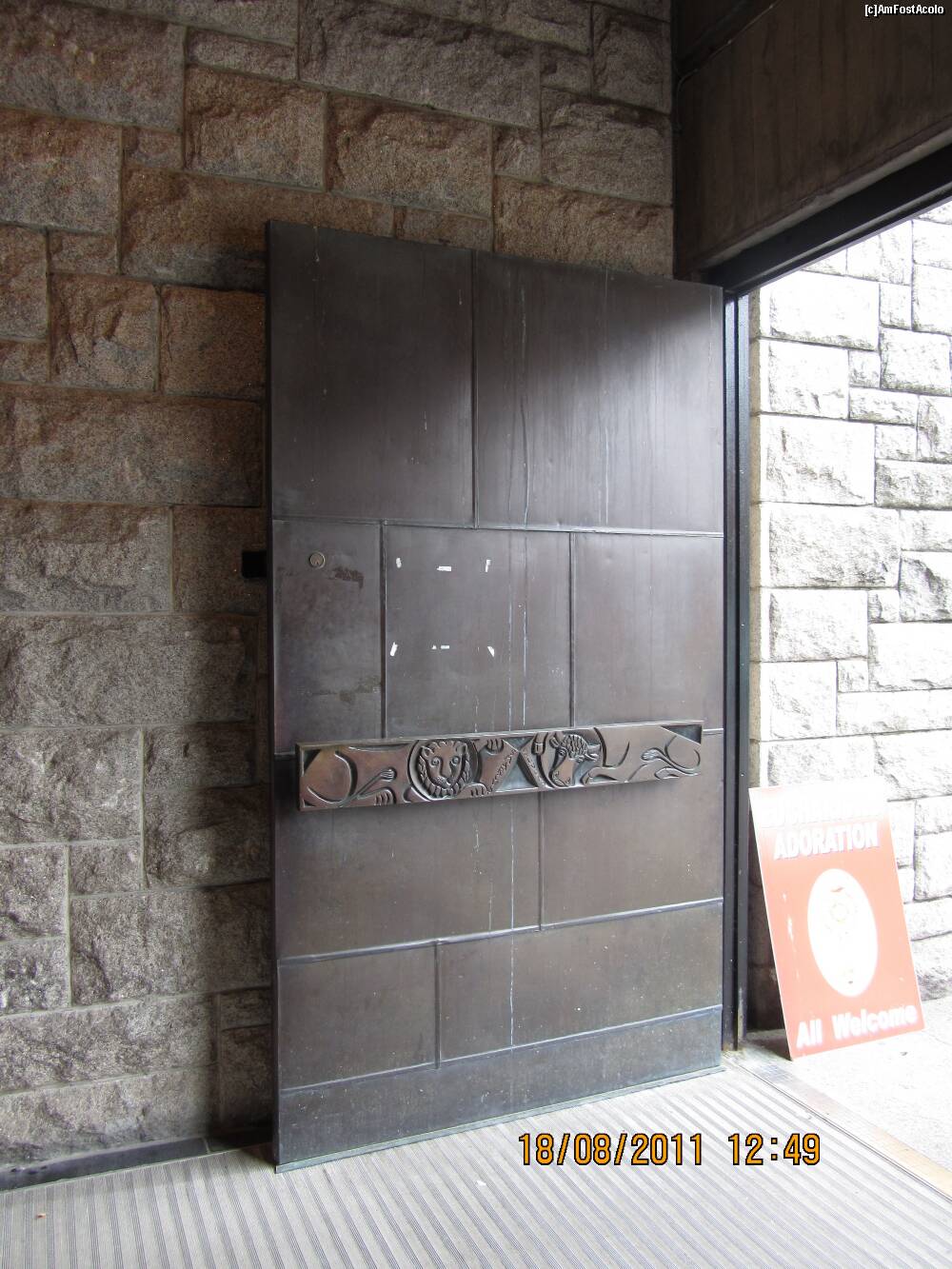 [P28] aceasta este intrarea in catedrala. pare mai degraba intrarea intr-un muzeu, nu-i asa ? si... daca observati, in partea dreapta, conationalii nostri... sunt peste tot in lumea aceasta.